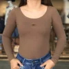 O detalhe em couro marrom acrescenta um toque de charme e sofisticação, tornando este body uma peça versátil para diversas ocasiões. Combine com suas saias ou calças favoritas e arrase!