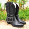 A Bota Cano Longo Western Franja Marrom Ref:17409 é a escolha ideal para quem valoriza elegância e qualidade. Produzida em couro legítimo, apresenta acabamento com corte laser e delicado bordado, que realçam sua sofisticação. A sola de couro garante durabilidade e conforto para o uso diário. Perfeita para compor looks modernos com um toque clássico.