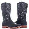 Cano de aproximadamente 32cm, em couro bovino na Np Preto, com bordados florais em alta definição na cor Branco. Forrada internamente em couro e puxador nas laterais.