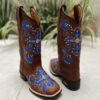 Bota Texana Bordado Cruz Branca Couro Marrom fabricada toda com couro 100% legítimo.
