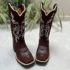 BOTA TEXANA BORDADO FLORES BRANCA COURO NOBUCK MARROM