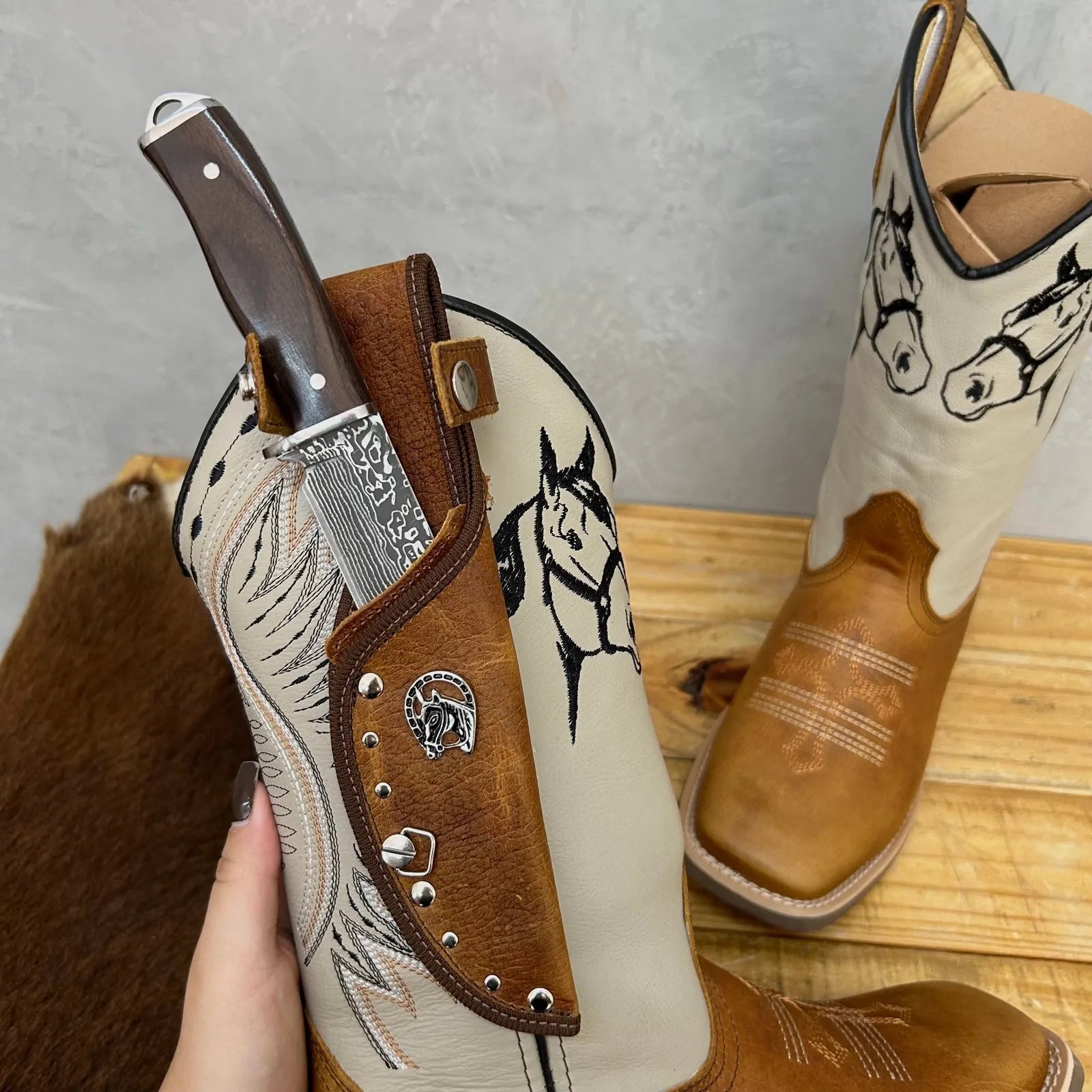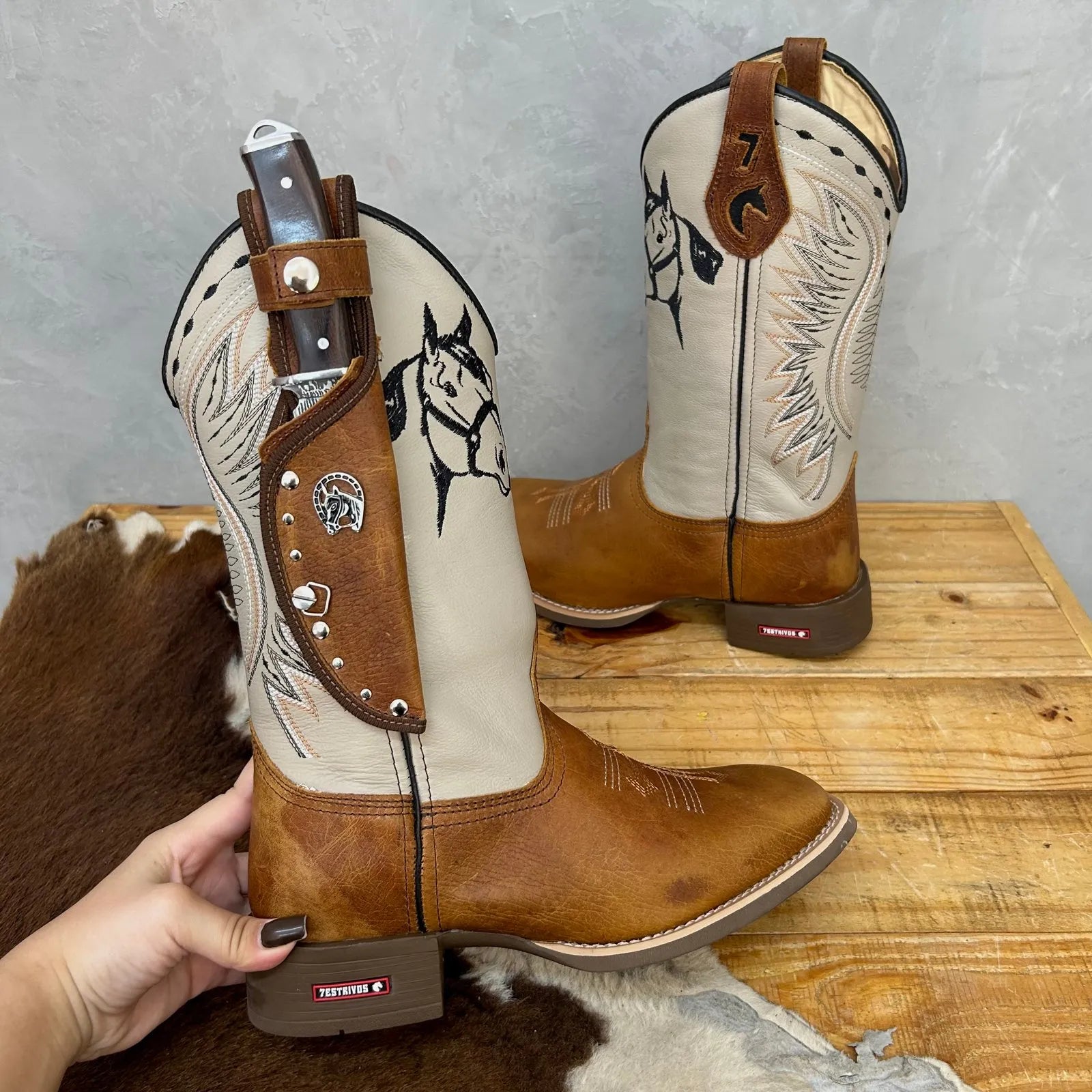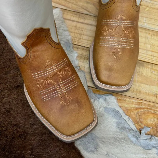 BotaFaca Cavaleiro – Couro Cano Napa Flay Bege | Couro Gáspea Fóssil Havana Chapado