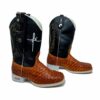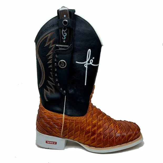 BotaFaca Fé – Couro Cano Látego Preto | Couro Gáspea Látego Mostarda Queima Aramado | Fé Branco