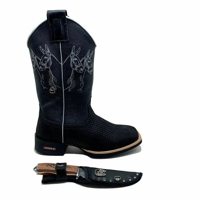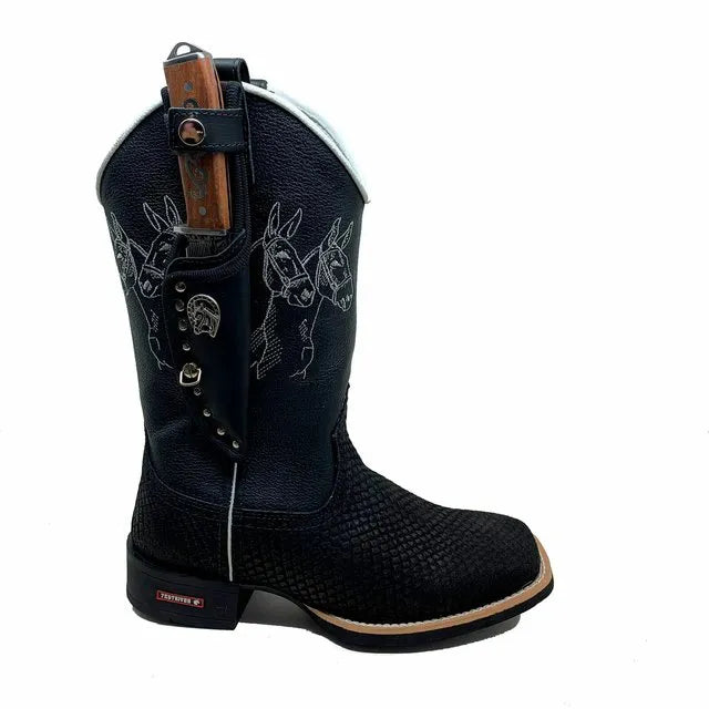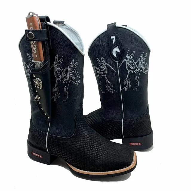 BotaFaca Mulas – Couro Cano Floater Preto | Couro Gáspea Nobuck Preto Estilizado em Tilápia | Mulas Brancas