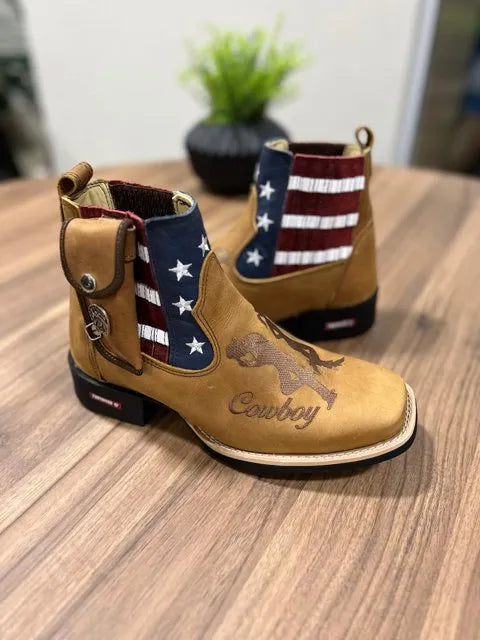 Botina Guilherme com Kit Canivete – Couro Fóssil Havana/ Bordado Cowboy Americano