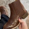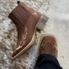 Botina Larissa – Couro Crazy Horse Nescau | Bordados Bege