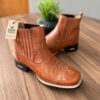 Botina Matias – Couro Pinhão Queimado/Bordado Florão Bege