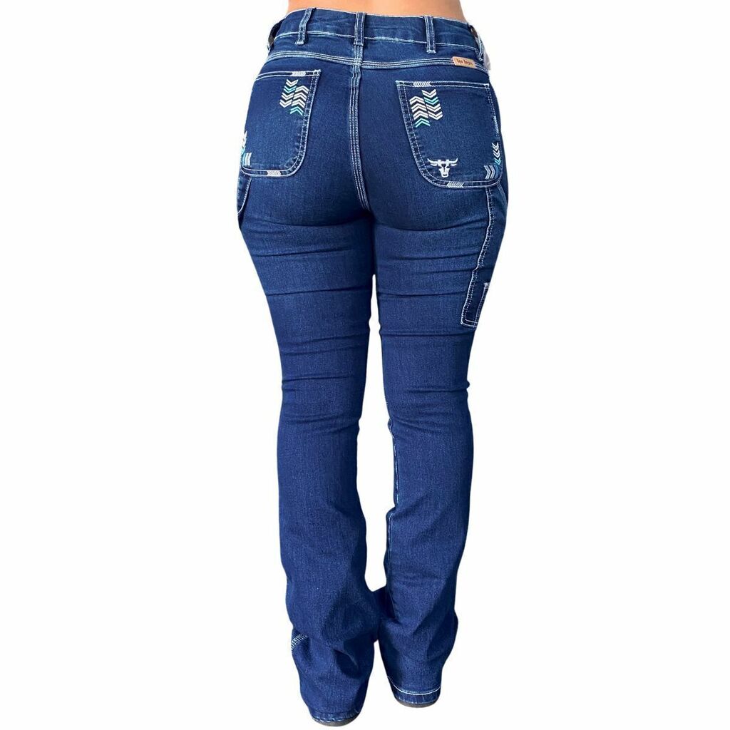 Calça Feminina Tex Team Carpinteira Bordada Amaciada Azul