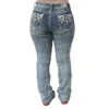Confeccionada em jeans premium com algodão e elastano, garante flexibilidade, ajuste anatômico e conforto extremo para o dia a dia. Os delicados bordados e aplicações de strass trazem um brilho sutil e autêntico ao visual western.