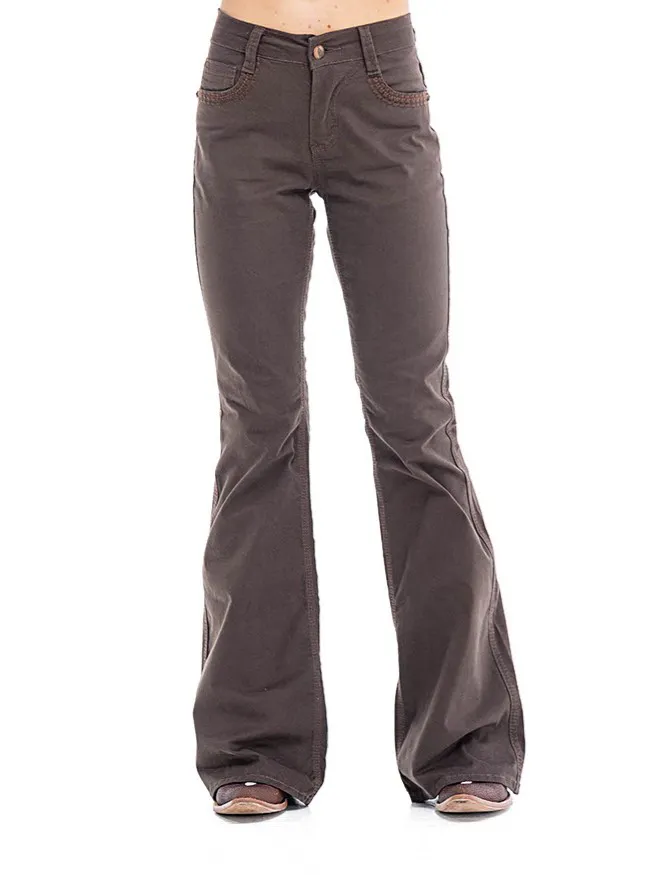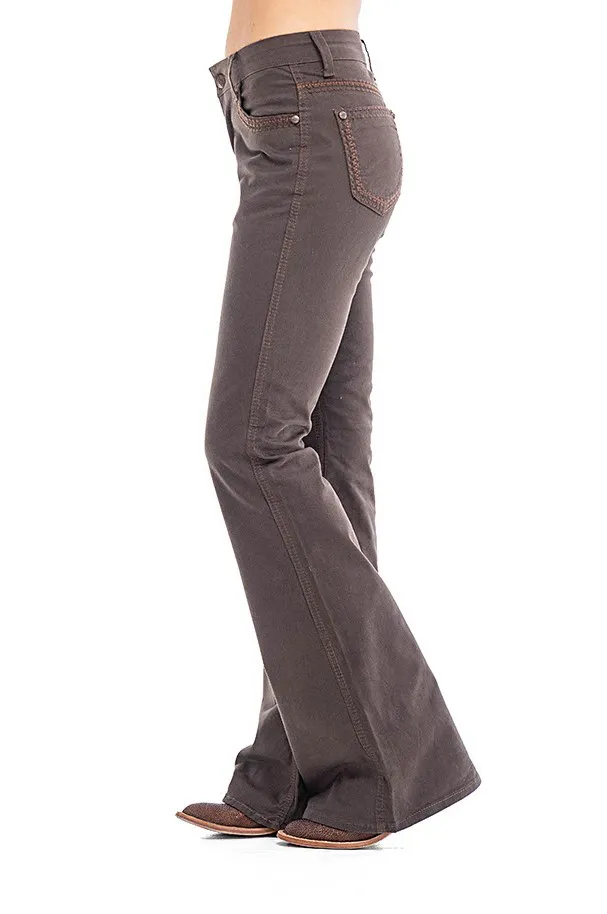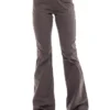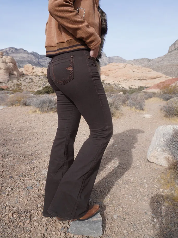Calca jeans country modelagem flare em cos medio. Bordado com pontos decorativos na pala e bolsos frente e costas. Tecido de sarja na cor marrom, barra mais flare que a modelagem tradicional ZW.