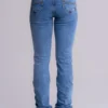 Produzida em jeans resistente e flexível, conta com bordados delicados nos bolsos traseiros, que trazem um toque charmoso e exclusivo à peça. Sua composição garante excelente caimento, toque macio e liberdade de movimento, enquanto a cintura média oferece ajuste confortável ao corpo.