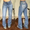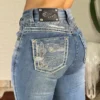 Jeans encorpado, com leve elasticidade, garantindo conforto, ajuste ao corpo e durabilidade.