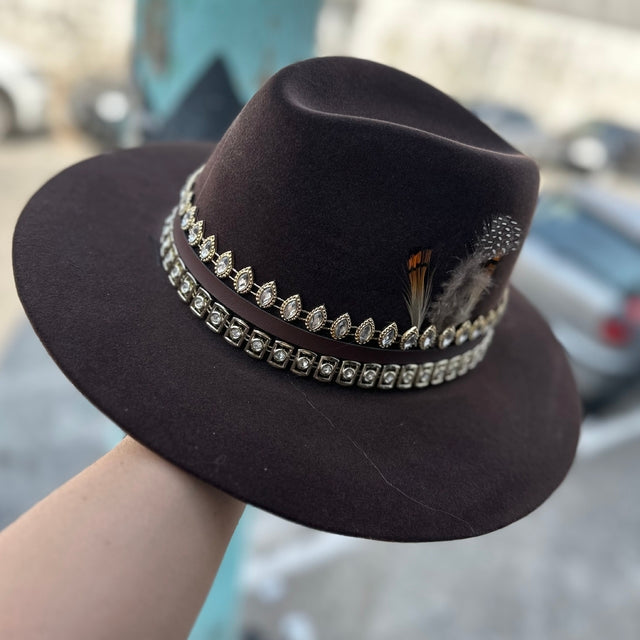 CHAPÉU PREMIUM AVELUDADO ESTILIZADO – MARROM