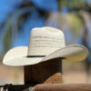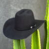 - Bandinha com Detalhes: Feita do mesmo material do chapéu, possui uma fivela passador e ponteira em prata adornada com uma pedra vermelha, adicionando um toque de distinção.