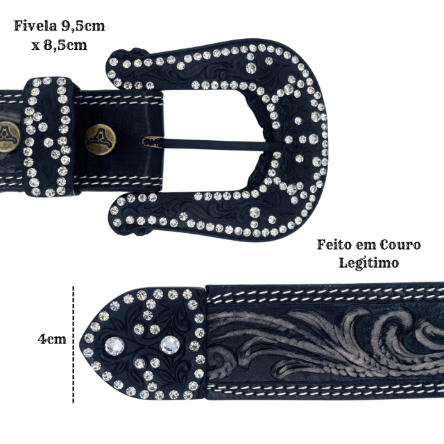 Sua fivela na cor preta é decorada com strass, adicionando um toque de brilho discreto e moderno, perfeito para mulheres que gostam de detalhes que fazem a diferença. Além de seu design exclusivo, o cinto é resistente e confortável, garantindo durabilidade para o uso diário.