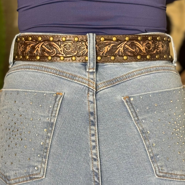 Se você é daquelas que ama um visual autêntico e cheio de presença, o Cinto Maisa Tex Team Maisa Marrom Café vai te conquistar! Com couro legítimo, detalhes em bege e rebites dourados, ele é puro charme country.