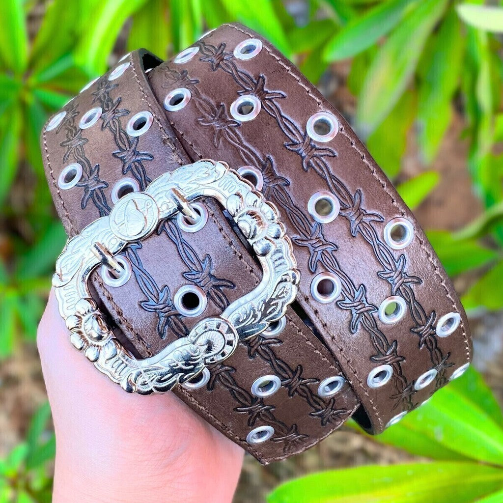 Cinto Master Mulandeiro Western Arame é confeccionado em couro legítimo de alta qualidade, garantindo resistência e estilo para o seu visual country. Com design exclusivo, apresenta dois furos para ajuste perfeito e um detalhe a laser inspirado em arame, que traz autenticidade e charme ao acessório. Ideal para quem busca durabilidade e um toque rústico sofisticado em seu look. Escolha o seu tamanho e complete seu guarda-roupa western com elegância!