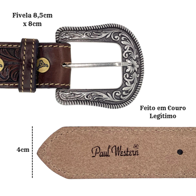 • Cinto Paul Western Marrom 449 é a escolha ideal para quem aprecia qualidade e estilo. Fabricado em couro legítimo de boi, este cinto apresenta um sofisticado design entalhado na cor marrom, perfeito para complementar seu look country.
