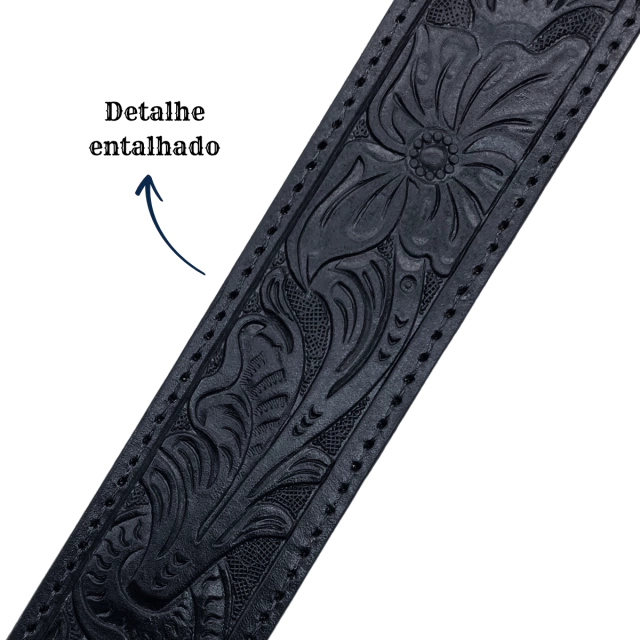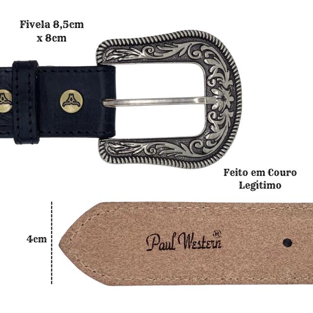 O Cinto Paul Western é confeccionado em couros legítimos de boi, com um elegante design entalhado na sofisticada cor preto. Este cinto não apenas realça seu visual, mas também oferece durabilidade e resistência.