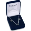 Versatilidade de Estilo: Um design minimalista e elegante que brilha por si só, mas que também é a base perfeita para composições de “layering” (camadas) com outros colares.Atributo Detalhes Material Ródio sobre base de latão Pedras Zircônia Cúbica Transparente Corrente 47 cm (18,5″) em latão com banho de ródio Proteção Revestimento protetor especial contra oxidação Dimensões (cm) Altura: 0,4 Por que este colar é especial?