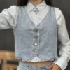 - Colete com fechamento frontal por botões prateados
