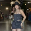 - Design Versátil: O colete com modelagem ajustada valoriza a silhueta, enquanto a saia traz movimento e leveza, formando um conjunto harmônico e marcante.