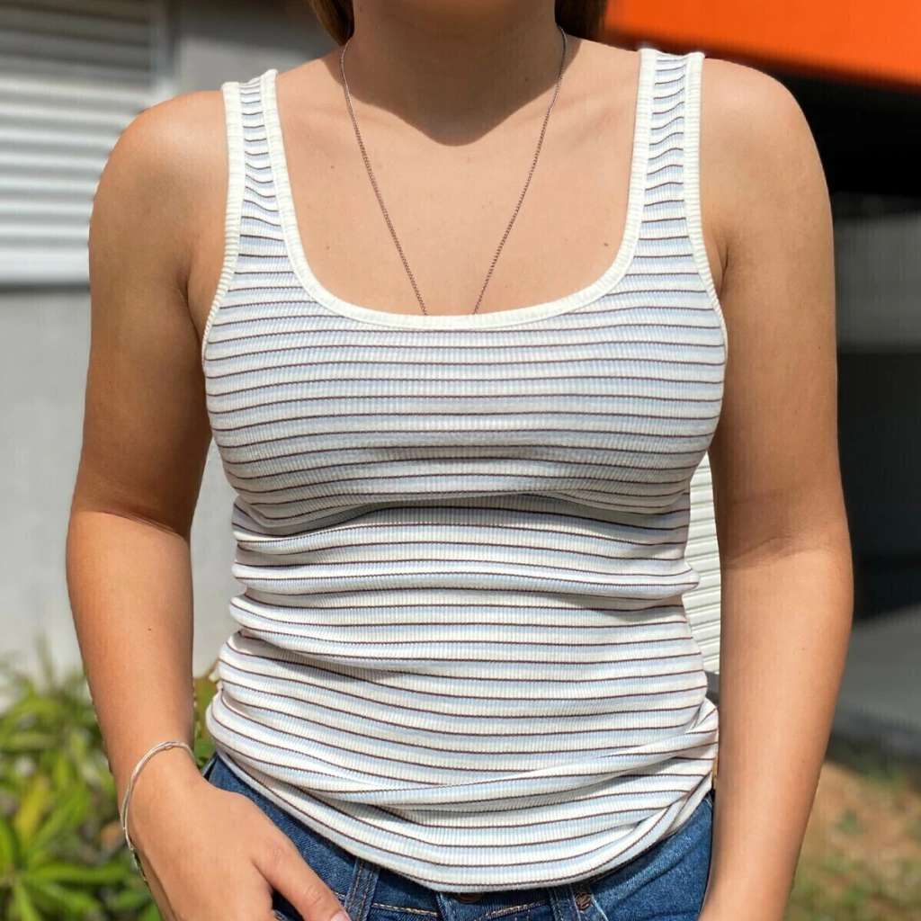 Regata Feminina Levis Branca Listrada é confeccionada em 100% algodão, garantindo conforto e frescor ideais para o dia a dia. Seu design listrado nas cores azul e preto oferece um visual moderno e versátil, perfeito para diversas ocasiões. Uma peça essencial para quem busca estilo e qualidade em uma única regata.