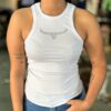 O detalhe em strass adiciona um toque de sofisticação, tornando esta regata ideal para diversas ocasiões. Combine com suas peças favoritas e destaque-se com elegância!
