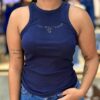 Os detalhes da logo em strass adicionam um toque de sofisticação, tornando essa regata perfeita para diversas ocasiões.