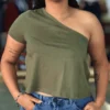 Seu design assimétrico, com uma manga só, proporciona um visual diferenciado e atual, permitindo combinações versáteis com jeans, shorts ou saias. O caimento soltinho valoriza todos os tipos de corpo e oferece liberdade de movimentos durante o dia a dia.