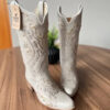 Texana Alice Bico Fino – Couro Off-White/Tribal Bege com Metais