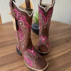 Texana Alice – Couro Horse Nescau/Bordado Tribal Rosa com Padroeira