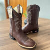 Texana Caio Infantil – Couro Off-White e Fóssil Havana/Bordado Boi Preto