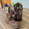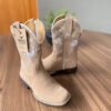 Texana Cecília Infantil – Couro Nobuck Areia/Bordado Flores Branco e Bege