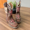 Texana Clarice Infantil – Couro Horse Nescau/Bordado Cruz Rosa e Bege