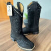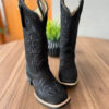 Texana Geovana – Couro Nobuck Preto/Bordado Ramos Preto