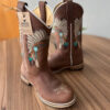 Texana Iracema – Couro Horse Nescau/Bordado Cocar Bege e Verde
