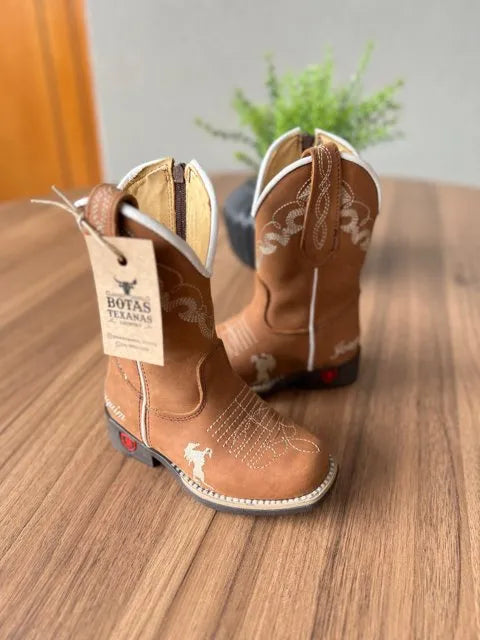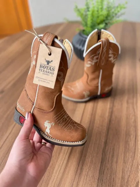 Texana José Felipe Infantil – Couro Fóssil Havana/Bordado Ramos Bege