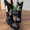 Texana Julia – Couro Nobuck Preto/Bordado Cavalo Branco