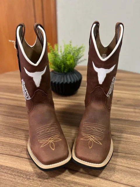 Texana Lucca – Couro Horse Nescau/Bordado Touro Padroeira Branco