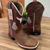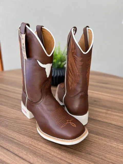 Texana Lucca – Couro Látego Marrom/Bordado Touro Branco